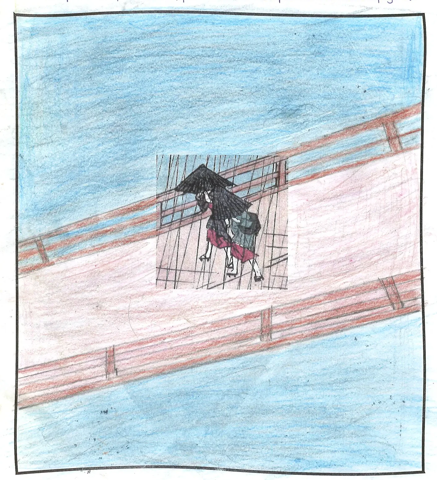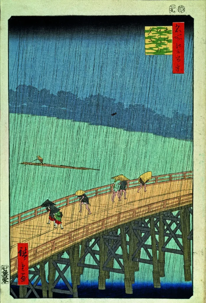 Averse Soudaine sur le Pont Shin Ohashi et Atake (Ohashi Atake no yudachi), de la série "Cent Vues Célèbres d'Edo (Meisho Edo hyakkei)"