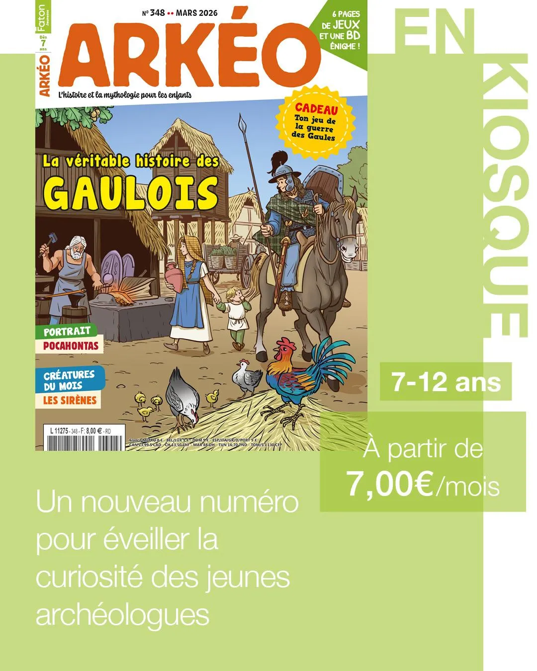 Créé chaque mois par les équipes des Éditions Faton, Arkéo s’adresse aux enfants de 7 à 12 ans passionnés d’histoire et curieux de découvrir les civilisations, les grands personnages et les événements qui ont marqué l’humanité.