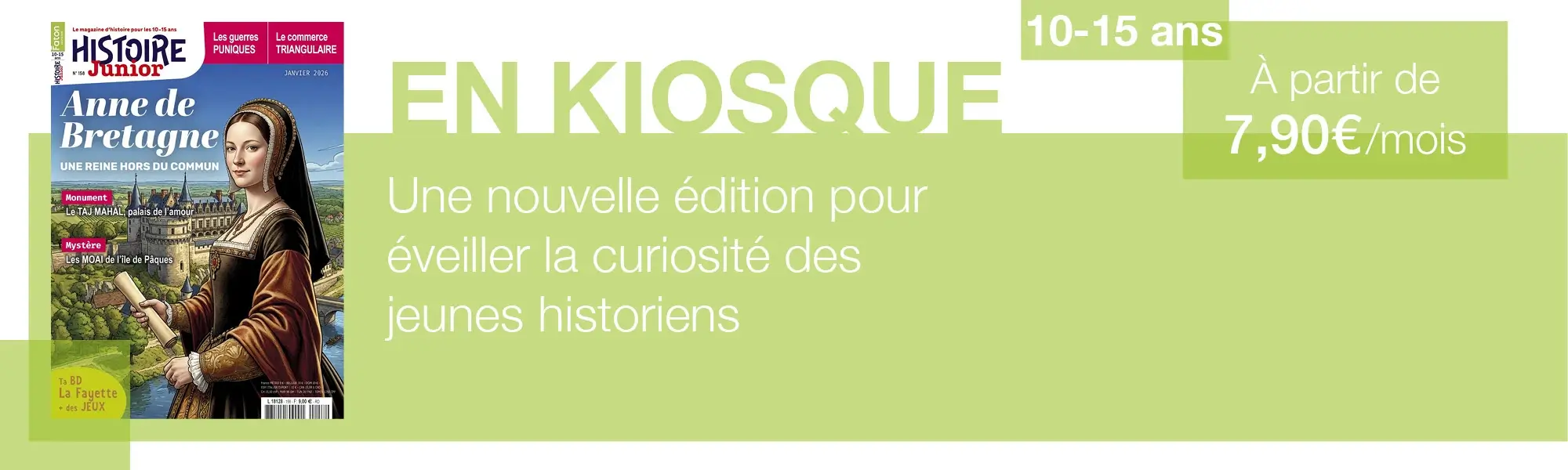Envie d’en savoir toujours plus ? Histoire Junior vous raconte de manière passionnante une époque, la vie d’un personnage, un règne ou des évènements qui ont changé le cours de l’histoire.