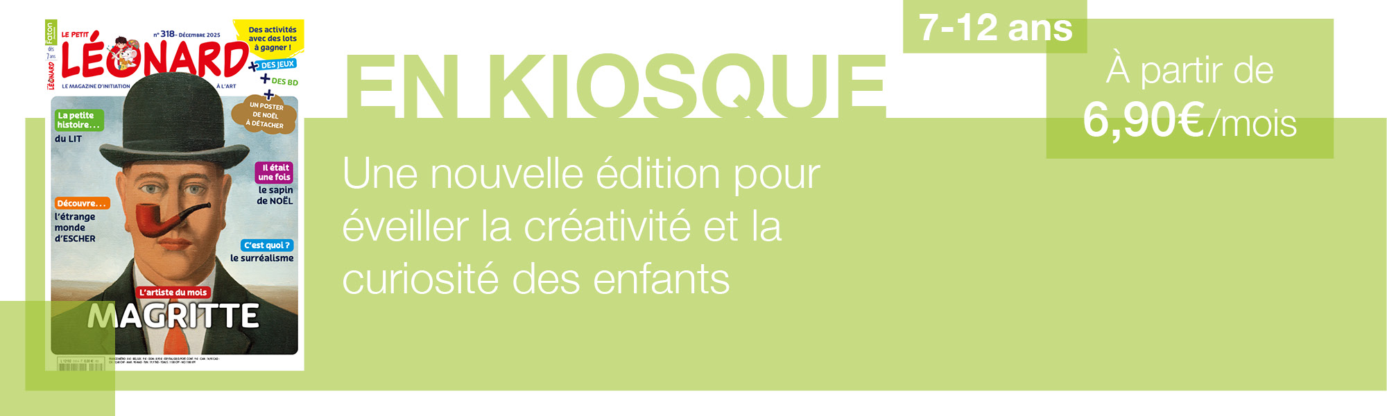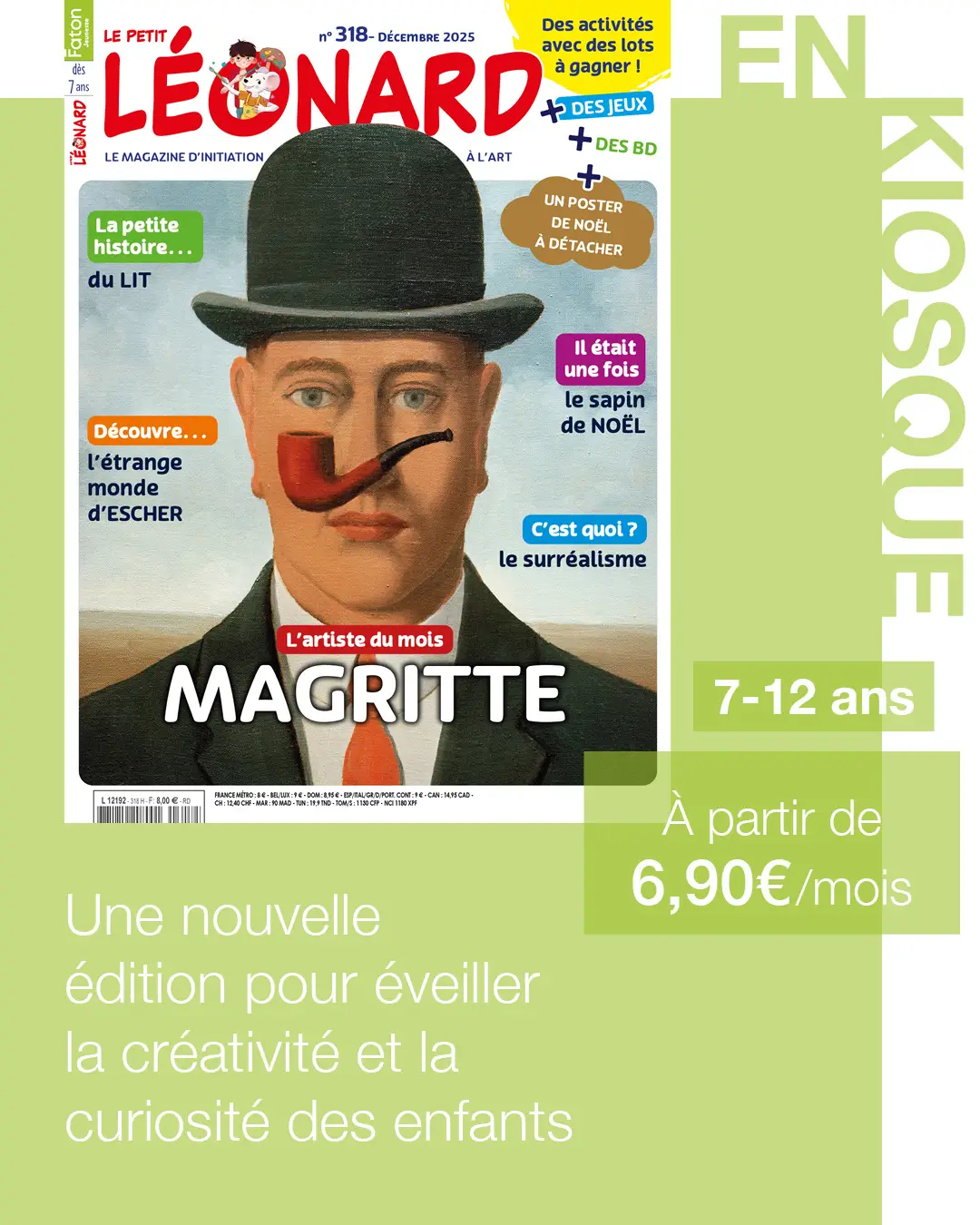 Créé chaque mois par les équipes des Éditions Faton, Le Petit Léonard s’adresse aux enfants de 7 à 12 ans, aux familles et aux enseignants qui veulent faire découvrir l’art de manière ludique et accessible.