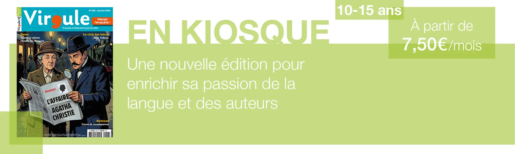 Votre enfant aime lire, écrire et jouer avec les mots ? Le magazine Virgule est un véritable outil pédagogique : chaque mois, il explore la littérature, la grammaire, l’orthographe et l’histoire de la langue à travers des articles passionnants. Virgule est idéal pour renforcer ses bases, enrichir son expression écrite et développer sa culture littéraire.