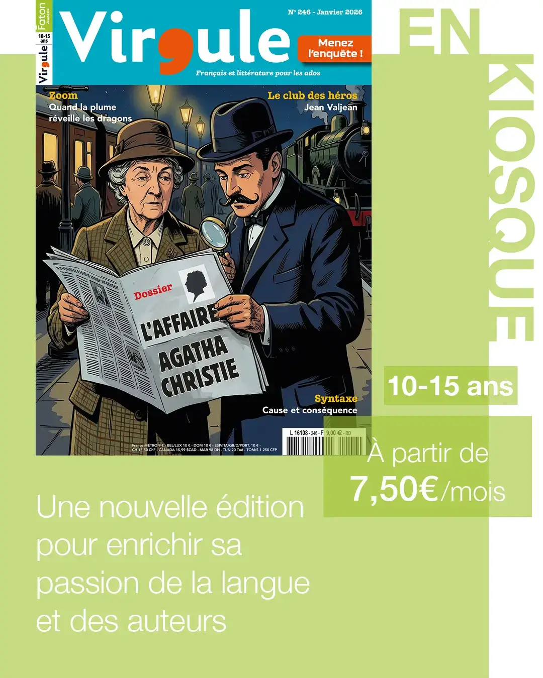 S’abonner à Virgule, le magazine Faton de référence sur la langue française, c’est recevoir chaque mois des dossiers inédits, des rubriques ludiques et des conseils exclusifs. Votre enfant rejoindra la Société Protectrice des Mots et développera son envie de lire tout en enrichissant son vocabulaire.