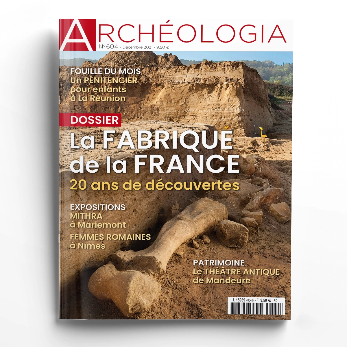Pour ce numéro de décembre, Archéologia vous propose, à l’occasion de la sortie de l’ouvrage La Fabrique de la France, dirigé par Dominique Garcia, président de l’Institut national de recherches archéologiques préventives, un grand dossier sur 20 ans d’archéologie préventive. En Belgique, le musée royal de Mariemont propose de (re-)découvrir le culte d’une divinité romaine méconnue, Mithra, grâce à sa fascinante exposition Le Mystère Mithra. Plongée au cœur d’un culte romain. À la Réunion, c’est un pénitencier pour enfants du XIXe siècle qui a fait l’objet de recherches approfondies. Premières du genre dédiées à ce type de vestiges, ces investigations permettront de mettre en valeur ce site inscrit sur la liste des monuments historiques depuis 2008. Dans le Doubs, l’immense théâtre antique de Mandeure domine le paysage. Difficile à étudier, il bénéficie depuis plusieurs années d’un programme collectif de recherches (PCR) qui a considérablement renouvelé notre perception de cet édifice. Enfin, à Nîmes, la nouvelle exposition du musée de la Romanité explore le thème de la représentation officielle des femmes romaines au cours des siècles. Sans oublier nos pages d’actualités des musées, des fouilles et de la recherche, notre objet du mois, l’archéofolio et notre sélection de livres ! En vous souhaitant de très belles fêtes de fin d’années et de belles lectures.