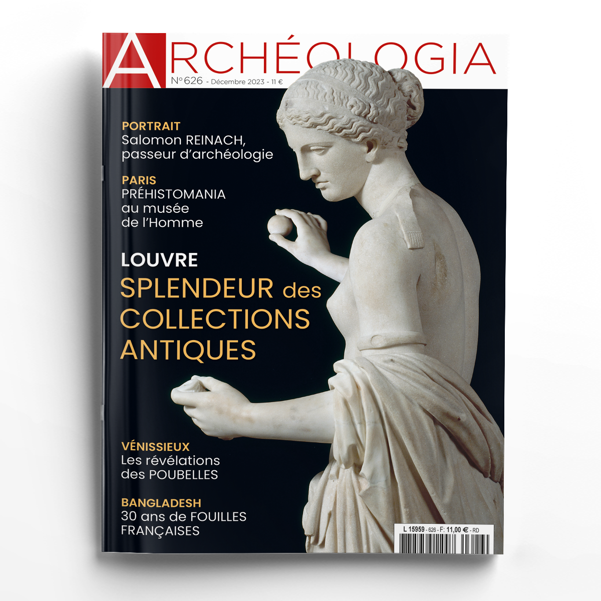 Dans ce dernier numéro de l’année 2023, Archéologia vous propose un dossier sur le redéploiement du grand département des Antiquités grecques, étrusques et romaines (AGER) au musée du Louvre. Trois salles majeures et la galerie Campana dévoilent les splendeurs d’un des plus anciens fonds de l’institution. La nouvelle exposition du musée de l’Homme nous invite, elle, à découvrir une cinquantaine de relevés réalisés sur toile ou papier lors des grandes expéditions scientifiques lancées entre les années 1920 et 1960, de l’Afrique du Sud à la Papouasie, de l’Espagne à l’Algérie ou au Tchad. Tout près de Lyon, à Vénissieux, une campagne de fouilles menée par l’Inrap en 2015 a révélé un étonnant dépotoir de milliers d’objets, véritables morceaux choisis du quotidien de la fin du XIXe siècle aux Années folles. Au Bangladesh, c’est le site de Mahasthangarh, fondée aux alentours du IVe siècle avant notre ère, qui livre depuis 30 ans les secrets de ce qui fut une des grandes villes du monde indien. Enfin, les trois frères Reinach – Joseph né en 1856, Salomon en 1858 et Théodore en 1860 – ont nourri les chroniques intellectuelles et politiques pendant près d’un demi-siècle. Salomon, auteur prolifique de milliers d’articles et de synthèses importantes, demeure une figure majeure pour l’anthropologie, les arts et l’archéologie. Sans oublier notre archéofolio, nos pages d’actualités des musées, des fouilles et de la recherche, notre objet du mois et notre sélection de livres ! En vous souhaitant de belles lectures et de très belles fêtes de fin d’année !