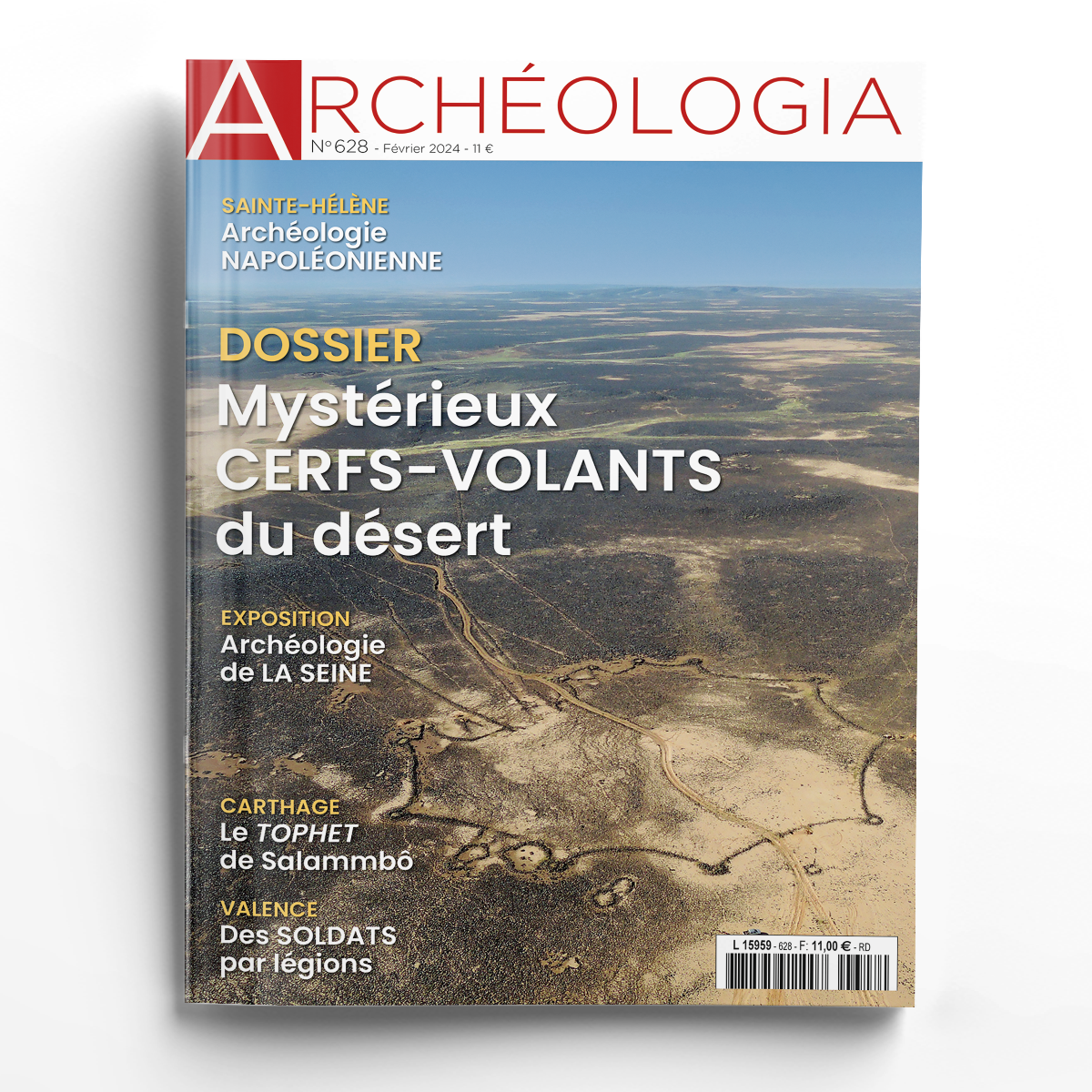 Dans ce numéro de février 2024, Archéologia vous propose un grand dossier sur les nouvelles connaissances concernant les desert kites, ou cerfs-volants du désert, l’un des plus fascinants dispositifs de chasse de la Préhistoire, aussi grandioses que mortels. À Paris, la Crypte archéologique de l’île de la Cité nous dévoile les puissantes relations que la Seine a tissées depuis le Néolithique avec ses riverains. Pour la première fois, des fouilles ont été menées sur trois sites des Domaines Français de Sainte-Hélène et nous dévoilent les conditions de vie de Napoléon lors de son exil, et peut-être, les raisons de sa mort. L’analyse de 150 urnes du tophet de Salammbô, sur le site de l’antique Carthage, est l’occasion de revisiter la controverse des sacrifices d’enfants, popularisée par le roman de Flaubert. Enfin, les fouilles de Lautagne dans la Drôme nous ramènent aux prémices de la guerre des Gaules, avec la découverte de trois camps militaires romains du début de la République. Sans oublier notre archéofolio, nos pages d’actualités des musées, des fouilles et de la recherche, notre objet du mois et notre sélection de livres ! En vous souhaitant de belles lectures !