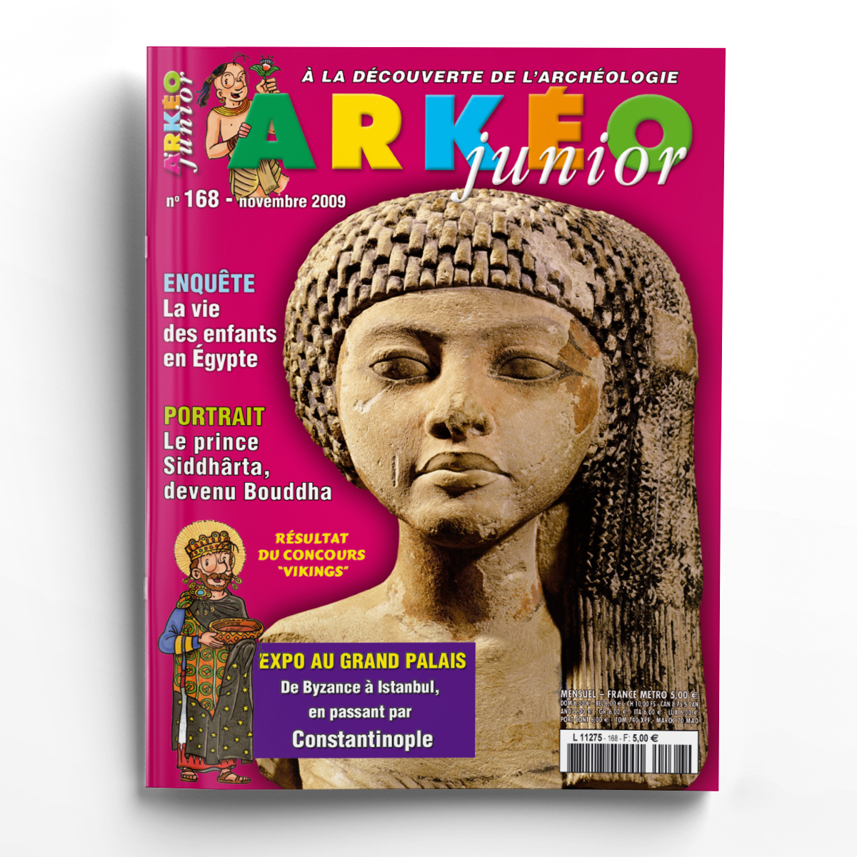 Magazine junior de 40 pages à découvrir. Dans ce numéro, une enquête sur la vie des enfants en Egypte ancienne et le portrait du prince Siddhârta...