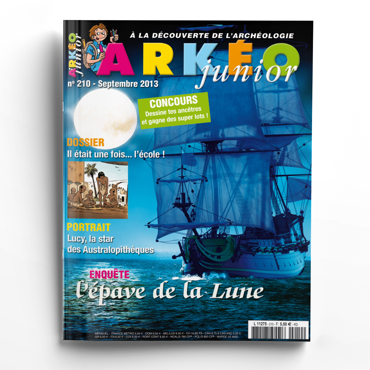 Rentrée scolaire oblige, au sommaire de ce numéro de septembre un dossier sur l'école au temps des Égyptiens, des Grecs, des Romains et au Moyen Âge... histoire de se sentir un peu moins seul le jour-j et se dire que de tous temps les enfants ont pris le même chemin de l'école. Mais avant cela, petit retour sur une plongée incroyable effectuée au large de Toulon par les archéologues du Drassm pour fouiller l'épave de la Lune, une frégate de Louis XIV coulée en 1664. Et autre découverte mémorable, celle de l'australopithèque nommée Lucy et dont le squelette quasi-complet fut mis au jour en Éthiopie en 1974... retour sur une star de la paléontologie. Et à tous et à toutes, une très bonne rentrée !