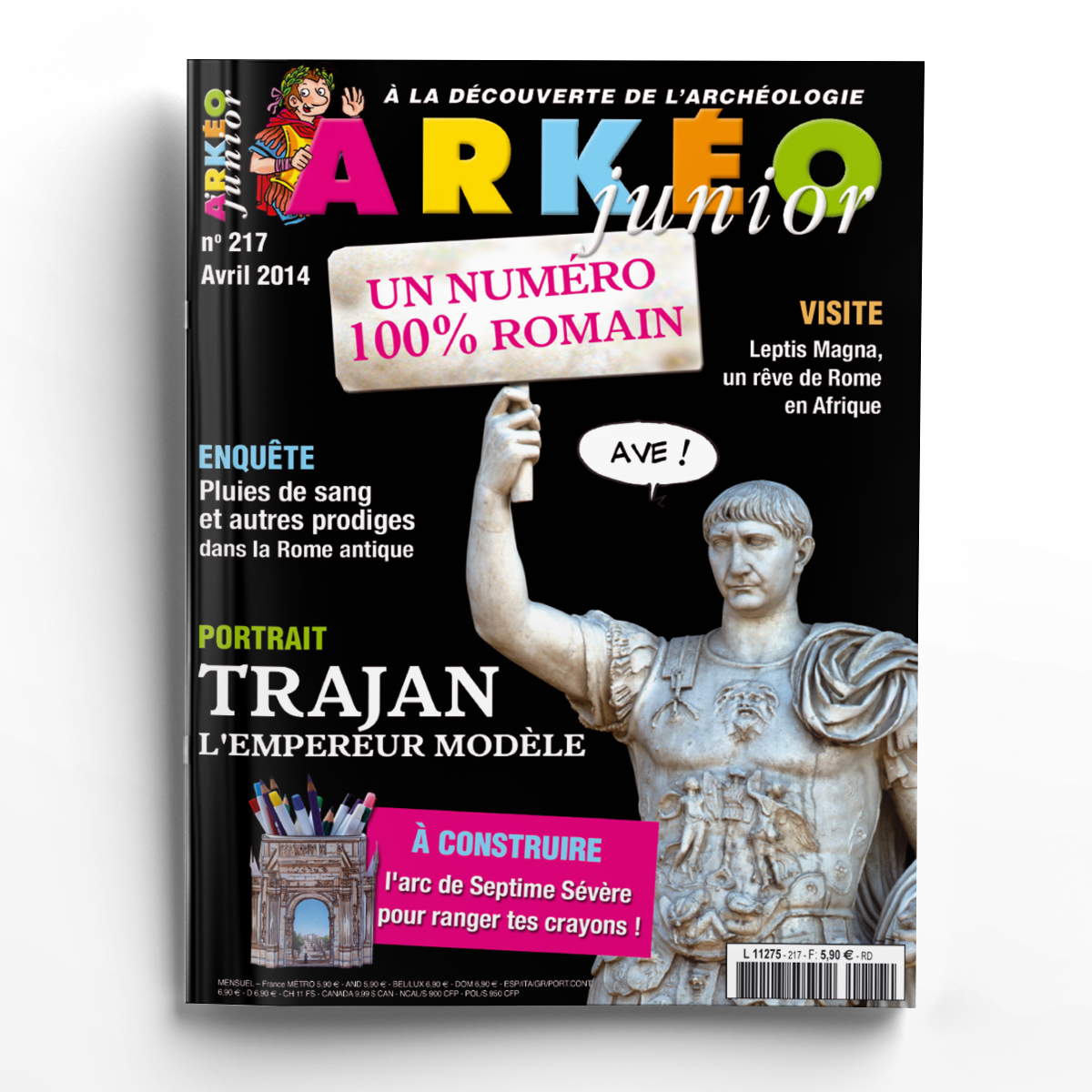 En route pour la Rome antique avec trois articles 100% romains. Faites connaissance avec Trajan pour commencer, l'optimus princeps, le meilleur des empereurs qui a étendu l'Empire à son maximum au IIe siècle après J.-C. et a laissé le souvenir d'un règne de paix et de prospérité à l'intérieur des frontières. Quant aux prodiges, qui font l'objet ici d'une enquête, sachez qu'ils ont toujours été “légion” à Rome ; des phénomènes naturels ou surnaturels qui ont toujours interpellé les Romains qui voyaient là l'empreinte manifeste des dieux. Enfin, un petit détour par la Libye vous fera découvrir Leptis Magna, la “Rome africaine”, dont les vestiges archéologiques, uniques, témoignent de la richesse de la cité, notamment à l'époque du règne de l'empereur Septime Sévère qui y est né. Et pour ranger vos crayons, détachez l'encart du numéro et prenez ciseaux et colle et construisez ce pot en forme d'arc tétrapyle... de Septime Sévère justement. N'oubliez pas de m'envoyer vos dessins !