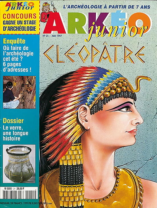 Enquête : Où faire de l'archéologie cet été ? 6 pages d'adresses Dossier : Le verre, une longue histoire Portrait: Cléopâtre