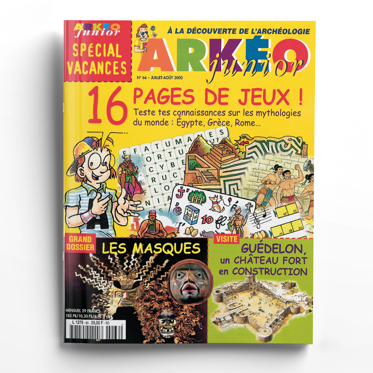 Dossier : les masques autour du monde Visite : Guédelon, un château fort en construction 16 pages d'archéo-jeux mythologiques Une fiche à collectionner, les actualités, le courrier, des BD… et 6 cartes postales à découper !
