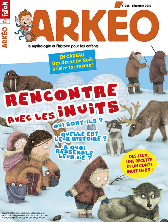 Ce mois-ci, Arkéo et Miss'Taupe te proposent de faire connaissance avec les Inuits. Ils ne connaissent pas l’été. Ils ont rarement vu le thermomètre monter au-dessus de 10°C mais ils le voient régulièrement dégringoler bien en dessous de zéro. Ils ont des jours sans nuit et des nuits sans jour. Ils sont encore 150 000 à vivre dans ces conditions extrêmes. Ce peuple, que tu connais peut-être mieux sous le nom d’Esquimaux, est installé au cœur des régions polaires depuis la Préhistoire. Mais sais-tu comment ils ont appris à s’adapter au froid ? Connais-tu leur mode de vie ? As-tu eu vent de leur histoire mouvementée depuis des siècles ? Non ? Alors prends ton écharpe, ton bonnet et tes gants : direction le Grand Nord, sur les pas de ces hommes des glaces... Très bonne lecture !