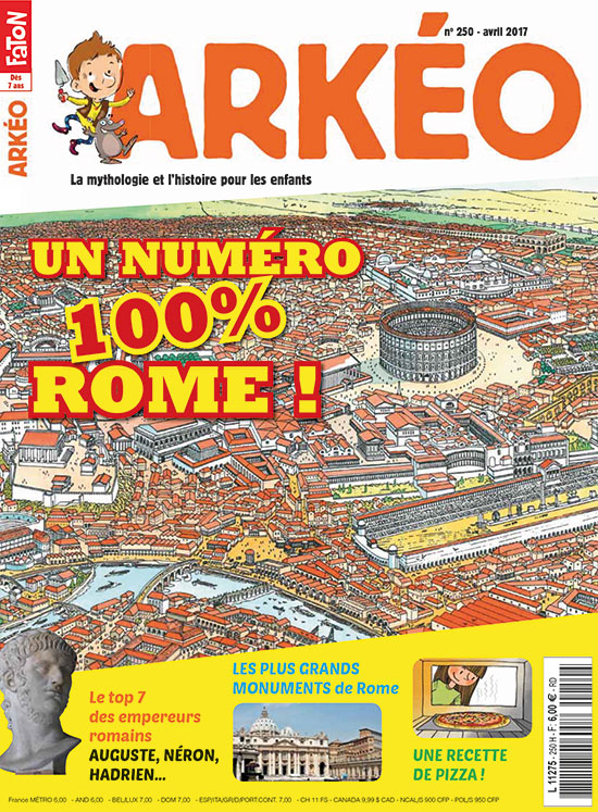 Ce mois-ci, Arkéo et Miss'Taupe te proposent un numéro 100% Rome ! C’est le printemps, les beaux jours reviennent enfin ! Pour fêter cela, nos deux amis ont eu envie d’aller se promener dans cette belle ville, capitale de l’Italie. La connais-tu ? Elle est chargée d’histoire et truffée de somptueux monuments... Dans ce numéro spécial, ils te raconteront l’histoire de Rome, depuis sa fondation jusqu’au Moyen Âge, ils te présenteront aussi les grands empereurs et t’emmèneront visiter ses plus beaux monuments ! Avec, en prime, une bande dessinée sur les origines de Rome, des jeux et une délicieuse recette de pizza... Bonne lecture et bonne promenade !