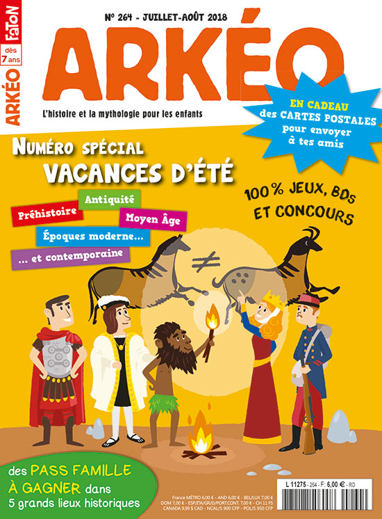 Ça y est, c’est l’été ! Et c’est l’heure des vacances bien méritées... Mais attention, pas question de se laisser aller pour autant. Heureusement, ARKÉO a pensé à tout pour ne pas perdre le fil de l’Histoire pendant cette pause estivale. Voici donc un numéro spécial qui fait le plein de jeux à travers les cinq grandes périodes historiques. Sans oublier tes BDs préférées et des concours pour gagner des pass familles dans quelques-uns des plus célèbres lieux d’Histoire de France. Très bonnes vacances !