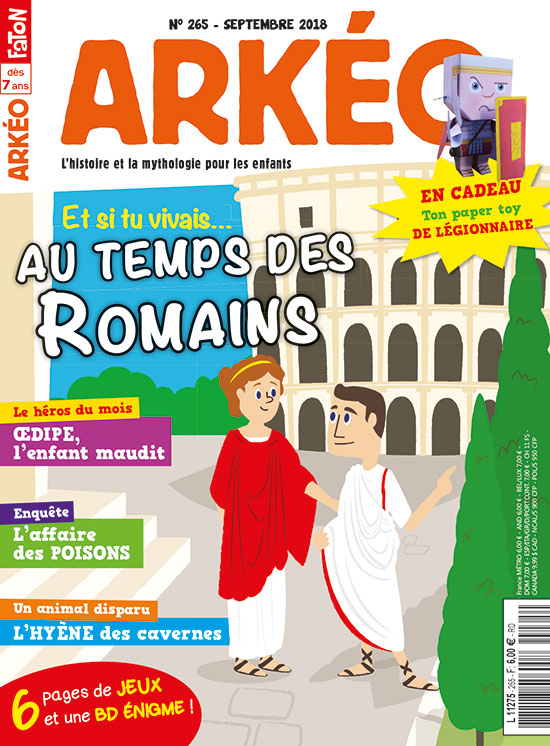 L’heure de la rentrée a sonné... Les vacances sont terminées ! Il est temps de reprendre ses bonnes habitudes. Pourquoi ne pas commencer par la lecture du dernier numéro d’Arkéo ? Il faut dire que ce mois-ci ton magazine a vu grand : bienvenue dans la Rome antique ! Pour tout savoir de la vie quotidienne sous l’Empire romain. Sans oublier tes rubriques habituelles, l’image-mystère et le héros du mois, une enquête passionnante sur une sombre affaire de poisons survenue pendant le règne de Louis XIV, et le coin de la récré avec ses jeux et tes BDs préférées. Bonne lecture et bonne rentrée !
