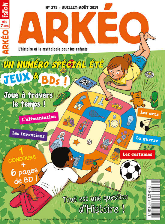 Vive les vacances ! C’est le moment d’en profiter, tu peux enfin dormir tranquillement, sans avoir à te réveiller le matin, et puis surtout passer tes journées à t’amuser. Et ça tombe bien, car Arkéo a tout prévu pour cet été avec ce numéro spécial jeux. Dix thèmes ont été choisis pour te faire voyager à travers le temps, de la Préhistoire à nos jours, et t’apprendre plein de choses. Tout ça en jouant ! Sans oublier tes pages de BD, une maquette à monter et un jeu-concours pour gagner une Escape Box. Elle n'est pas belle la vie ? Bonne lecture !