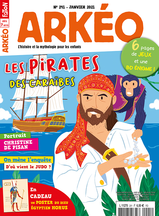 Pour bien commencer l’année, Arkéo prend le large... Direction la mer des Caraïbes pour faire la rencontre des nombreux pirates qui y naviguent entre le 16e et le 18e siècle. Attention, risques d’abordage à chaque page ! Puis, que dirais-tu d’un petit détour par le Moyen Âge pour faire la connaissance de Christine de Pisan, l’une des plus célèbres poétesses françaises ? Retrouve aussi tes rubriques habituelles, l’album-photo, la vie de tous les jours et une enquête sur les origines du judo. Sans oublier tes jeux du coin de la récré et tes BD préférées. Bonne lecture et bonne année !