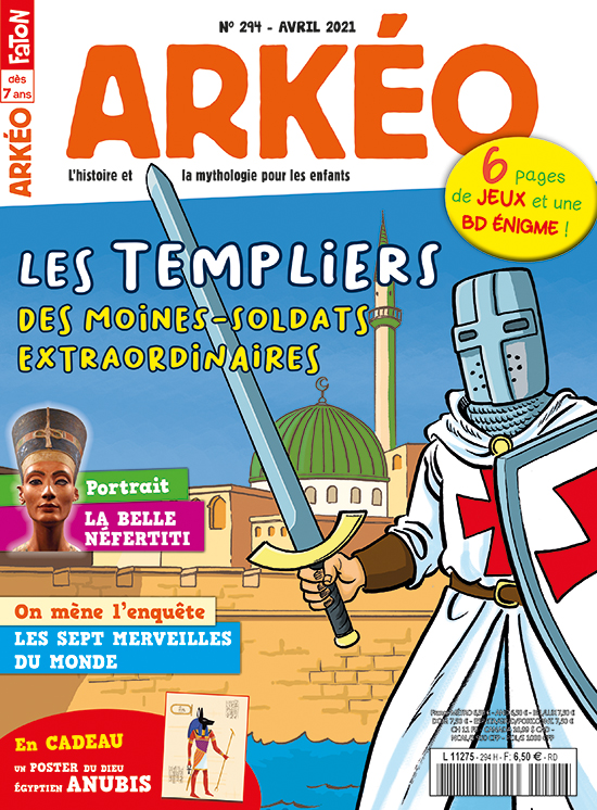 Prends ton épée, ton heaume et ton cheval, ce mois-ci on part au Moyen Âge pour en apprendre plus sur les Templiers ! Ensuite, lance-toi dans une enquête sur les sept merveilles du monde... Qu’est-ce que c’est exactement ? Après cela, rendez-vous avec la belle reine égyptienne Néfertiti qui va te raconter sa vie. Et pour ta dose d’action mensuelle, prépare-toi au combat du mois entre des dieux babyloniens bien surprenants ! Sans oublier tes jeux du coin de la récré et tes BD préférées. Bonne lecture !