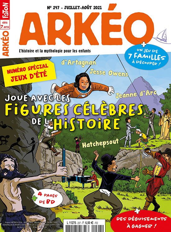 Dans Arkéo, c’est connu : on s’amuse et on apprend ! Pour l’été, viens jouer avec les hommes et les femmes qui ont marqué les grandes périodes de l’Histoire dans des domaines aussi différents que le sport, la science, la politique mais aussi l’art, la guerre et la pensée... Retrouve-les ensuite dans un jeu de 7 familles à découper ! Sans oublier tes BDs et un jeu-concours pour gagner un super déguisement ! Bonnes grandes vacances !