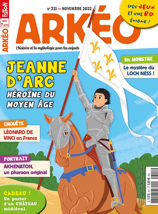 Ce mois-ci, Arkéo part à la rencontre de Jeanne d’Arc, une jeune femme au caractère bien trempé qui affirme en 1428 avoir entendu des voix lui intimant l’ordre de chasser les Anglais du royaume de France et de faire sacrer le nouveau roi à Reims... La suite est à découvrir dans le grand dossier ! Puis direction l'Égypte antique pour découvrir le règne surprenant du roi Akhenaton qui a bouleversé des habitudes ancestrales. Sans oublier tes rubriques habituelles, les jeux du coin de la récré et tes BD préférées. Bonne lecture !