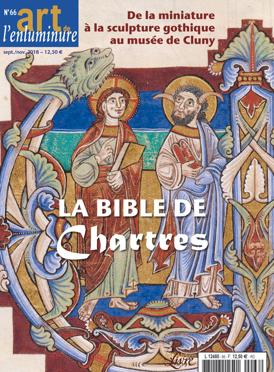 A l'occasion de l'exposition du musée de Cluny, Musée national du Moyen Âge, "Naissance de la sculpture gothique. Saint-Denis, Paris, Chartres 1135-1150", le n° 66 d'Art de l'enluminure est consacré à une grande bible du milieu du XIIe siècle, probablement exécutée à Chartres pour Saint-Denis. Son luxuriant décor ornemental et figuré fait ici l'objet d'une étude pluridisciplinaire qui la met au cœur du renouvellement stylistique que connaissent l'architecture, le vitrail et la sculpture de cette époque.