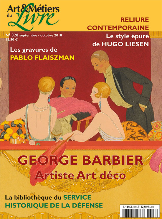 Dans ce numéro de rentrée, nous vous invitons à découvrir les œuvres du relieur Hugo Liesen, de l’artiste du livre Catherine Decellas et du graveur Pablo Flaiszman. La bibliothèque du Service historique de la Défense ouvre ses portes et rend l’histoire militaire accessible à tous tandis que l’univers élégant et raffiné de l’illustrateur George Barbier nous transporte au cœur des années Art déco.