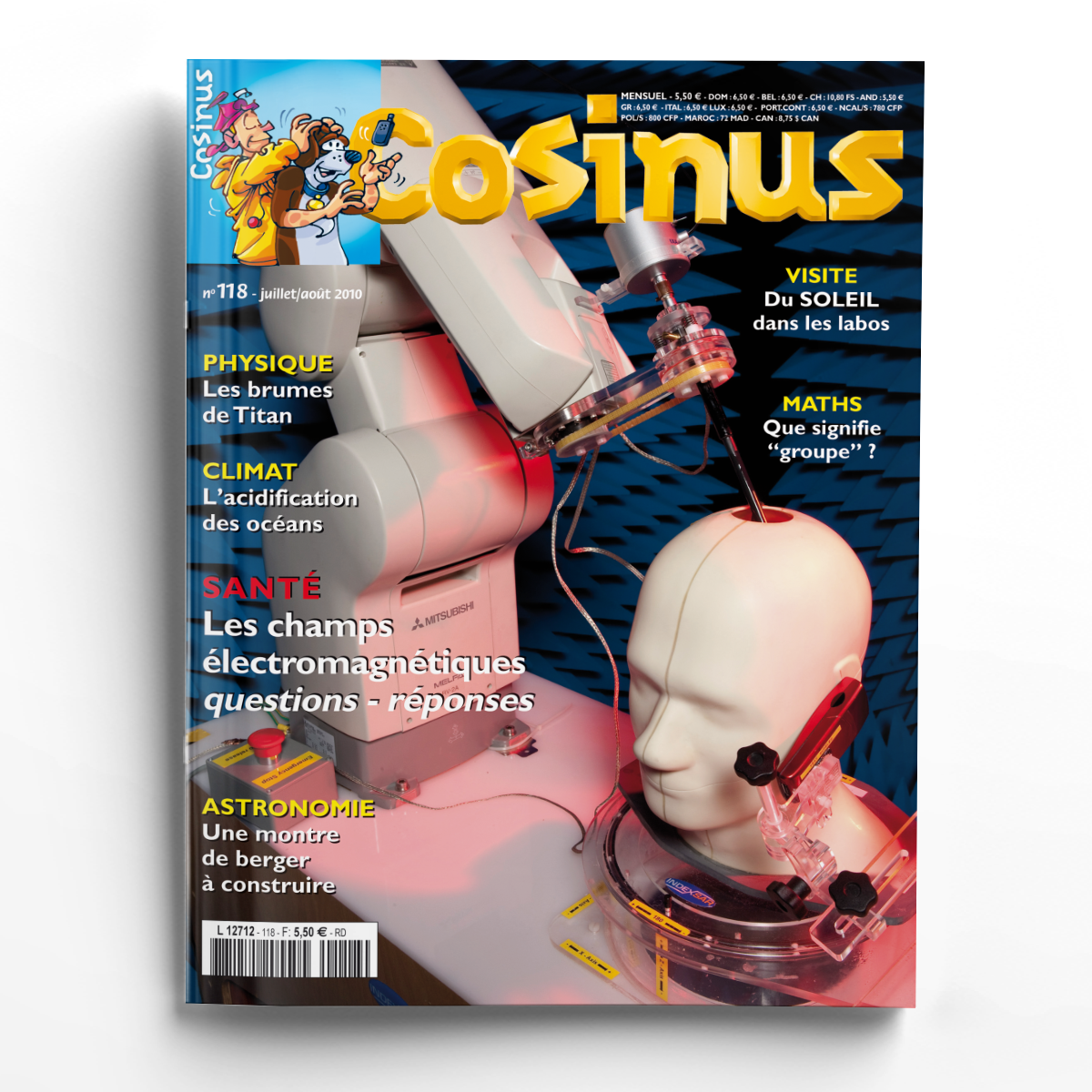 Pour ce numéro d'été de votre revue scientifique, la physique est dans tous ses états : ... De la physique sous les brumes de Titan où nous emmène Vincent Boudon, physicien spectroscopiste. Ses recherches sur le spectre du méthane participent au décryptage des messages des sondes Cassini et Huygens. ... De la physique à la lumière de SOLEIL, centre de recherches innovant abritant un synchrotron de 354 m de long et 26 labos appelés "lignes de lumières". Des scientifiques de tous horizons s'y pressent pour réaliser leurs expériences en physique, chimie, archéologie, médecine, etc. ... Et de la physique encore, pour faire le point sur le rapport de l'Afsset concernant les ondes électromagnétiques. Nous proposons dans ce dossier de s'intéresser au cheminement des résultats scientifiques, une fois publiés. Comment sont-ils utilisés par les experts ? Qui sont ces experts ? Que contient le rapport, et quelles implications pour la suite ? L'été est le moment idéal pour fabriquer des cadrans solaires : dans l'encart central, une maquette de cadran portatif ou "montre de berger", à découper et assembler (explications et mode d'emploi dans l'article associé). Cet été est aussi l'occasion d'aborder et d'expliquer un problème majeur associé au réchauffement climatique : l'acidification des océans. Ce phénomène mal connu a déjà commencé et les conséquences envisagées créent un certain pessimisme… Et toujours dans votre revue : les maths d'Evariste (la théorie des groupes), la BD associée, actus, jeux, expériences.