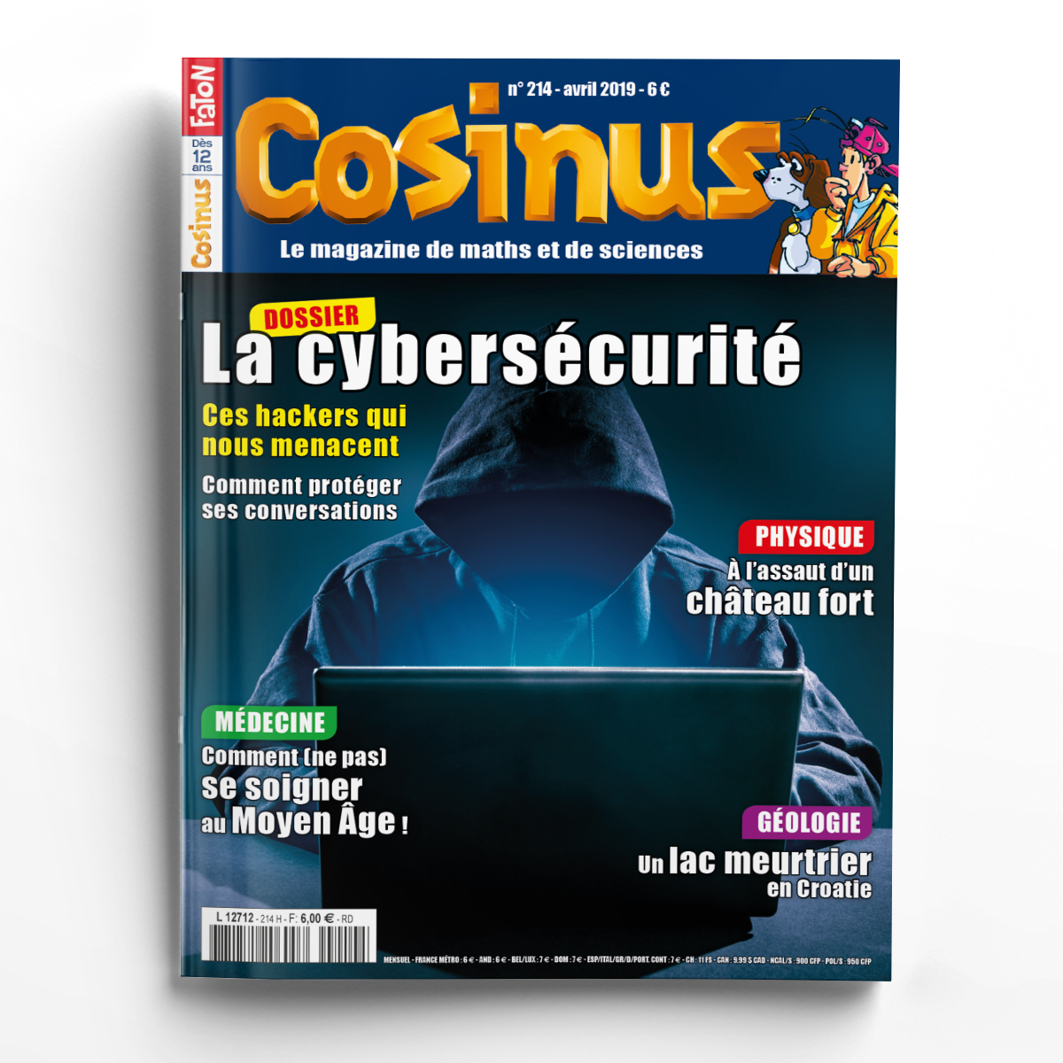Pour ce numéro, Cosinus fait un grand écart entre les technologies actuelles et le passé. Dans le dossier du mois, découvrez les enjeux de la sécurité informatique et les profils variés des hackers qui s'emparent de nos données. Ensuite, direction le Moyen Âge. Comment donnait-on l'assaut à un château fort ? Grace à la physique, tudieu ! En cas de maladie, comment se soignait-on ? Quand un médecin approchait, fallait-il s'enfuir à toute vitesse ? Pour conclure cette parenthèse médiévale décalée, découvrez le cas de L'œil du dragon, un lac mortel situé en Croatie !