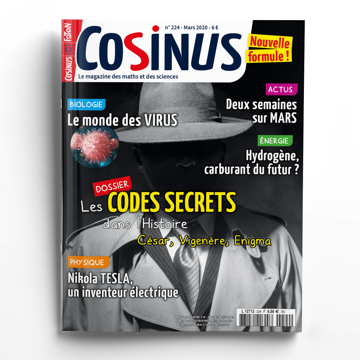Depuis deux mois, le coronavirus est de toutes les conversations. La situation évolue vite, et si la France a été relativement épargnée pour l’instant, il est difficile de prévoir ce qu’il se passera dans les prochaines semaines. Cosinus consacre un article à cette nouvelle épidémie et au monde des virus, et multiplie les occasions d’apprendre avec des articles sur les codes secrets, un carburant du futur et l’excentrique Nikola Tesla.
