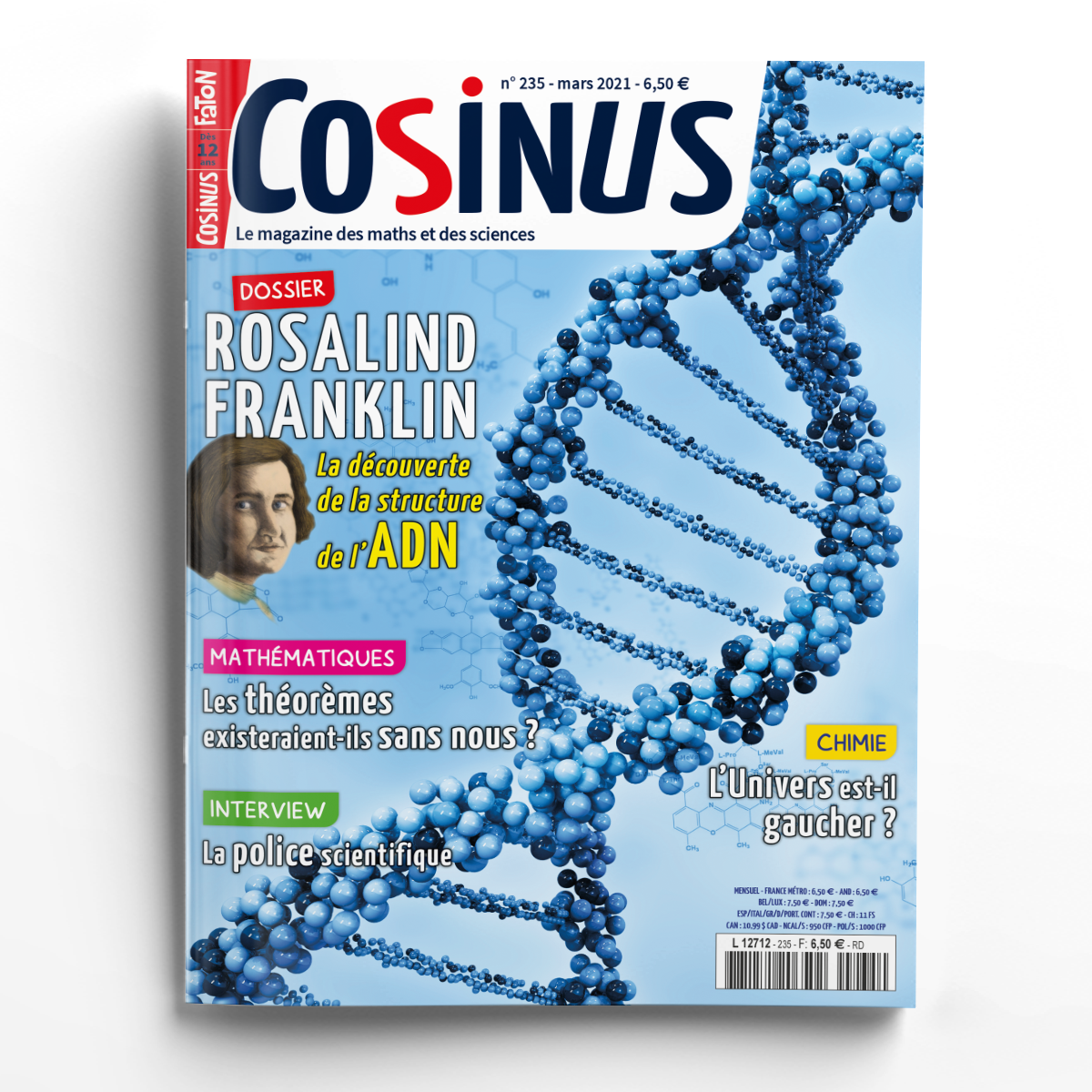 Comment Rosalind Franklin a-t-elle déterminé les formes de l’ADN, d’un virus ou de molécules minuscules ? L’Univers est-il gaucher ou droitier ? Les mathématiques existeraient-elles sans nous ? Ces trois questions intrigantes ont leur réponse dans les pages du Cosinus de mars !