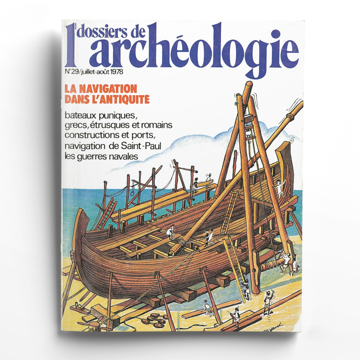 La navigation dans l'Antiquité est l'objet de ce dossier de la revue archéologique. Au sommaire : Bateaux puniques, étrusques, grecs et romains. Constructions et ports, navigation de Saint Paul, les guerres navales.