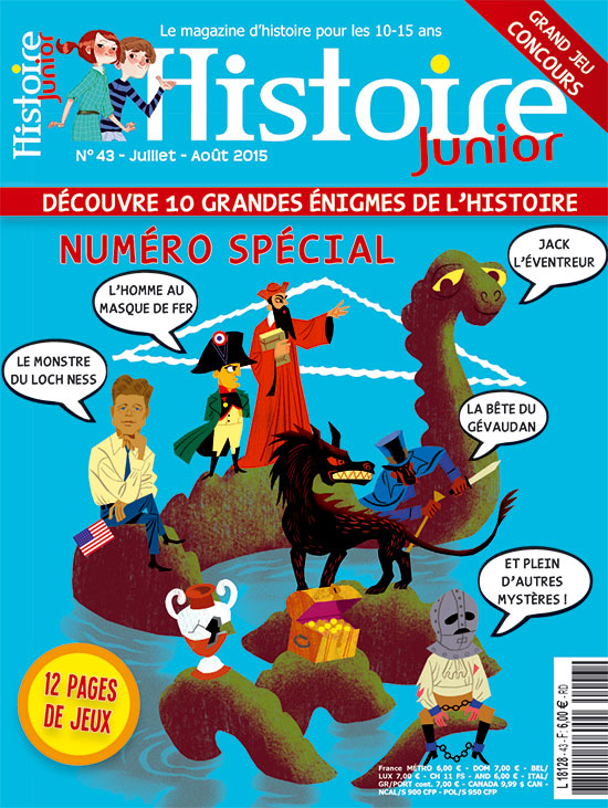 Pour ce dossier d’été, Histoire Junior s'intéresse aux grandes énigmes de l'histoire. Il arrive parfois, en effet, que même les plus grands historiens ne sachent pas toujours tout sur tout et que des zones d'ombre demeurent sur certains événements du passé. Sans doute, connais-tu d'ailleurs quelques-uns de ces épisodes étranges et intrigants de notre Histoire. Mais sais-tu quelles sont les nouvelles pistes envisagées par les chercheurs pour percer leur mystère ? Car évidemment, il n’y a jamais eu d’extraterrestres, de magie ou de forces invisibles derrière ces histoires étonnantes. Clovis, Clio, Prof'Hérodote et Histor ont donc sélectionné dix énigmes parmi les plus célèbres depuis le Moyen Âge jusqu'à nos jours pour tenter d'en savoir plus : le vase de Soissons a-t-il vraiment été cassé (486) ? où les templiers ont-ils caché leur fameux trésor (1307) ? Nostradamus est-il un véritable prophète (1555) ? qui a-t-on appelé l'homme au masque de fer (1669) ? la bête du Gévaudan doit-elle être considéré comme un simple loup (1764) ? comment l'empereur Napoléon Ier est-il mort (1821) ? qui se cache derrière le surnom de Jack l'Éventreur (1888) ? peut-il y avoir un monstre dans le lac du Loch Ness (1933) ? pourquoi le triangle des Bermudes est-il tant redouté (1945) ? et pourquoi John F. Kennedy a-t-il été assassiné (1963) ? C'est à toi maintenant de te forger ta propre opinion à la lecture de ce dossier ! En attendant, n'oublie pas de passer de très bonnes vacances...