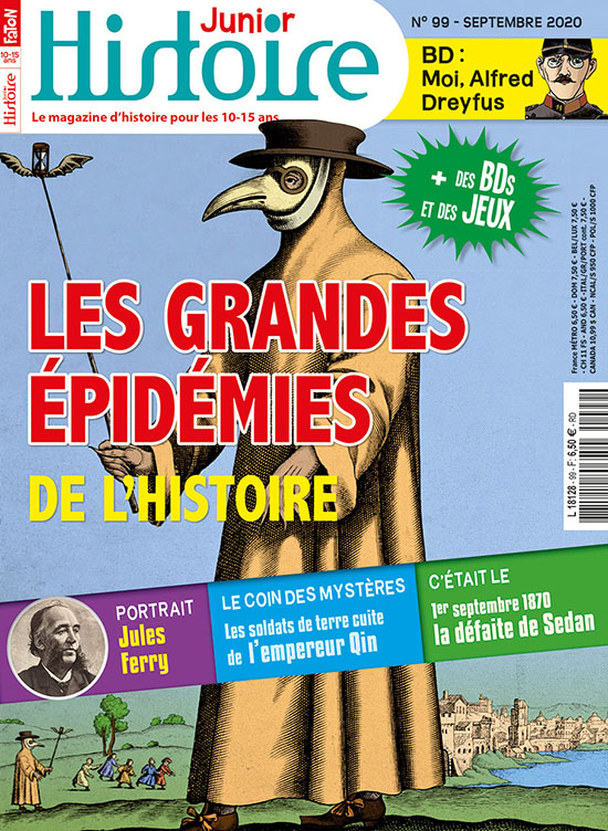 En septembre, Histoire Junior s'intéresse aux grandes épidémies de l'Histoire. Le Coronavirus qui frappe actuellement le monde entier est loin d'être la première pandémie. Dans le passé, l'humanité a dû faire face à de terribles épidémies qui ont bouleversé son existence et menacé son avenir. À chaque fois, elle pu se relever et, au fil des siècles, la médecine et les recherches scientifiques ont évolué et permis de mieux réagir face aux maladies. Clovis et Clio te proposent de mettre ton masque pour faire le tour des épidémies les plus marquantes de l'Histoire ! Bonne lecture et excellente rentrée !