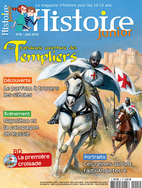 Ce mois-ci, Histoire Junior t'emmène au Moyen Âge avec un grand dossier sur les Templiers et une bande dessinée sur la première croisade. Prêt à voyager en Orient ? Dans le même numéro, tu découvriras un bel article sur l'histoire du parfum de l'Antiquité jusqu'à nos jours. Puis, à l'occasion du jubilé de diamant (60 ans de règne) d'Elizabeth II d'Angleterre, nous te proposons une série de portraits des plus grandes reines d'Angleterre. Enfin, tu suivras Napoléon Ier dans la plus meurtrière de ses campagnes... en Russie ! Illustration de couverture : © Neil Wilson