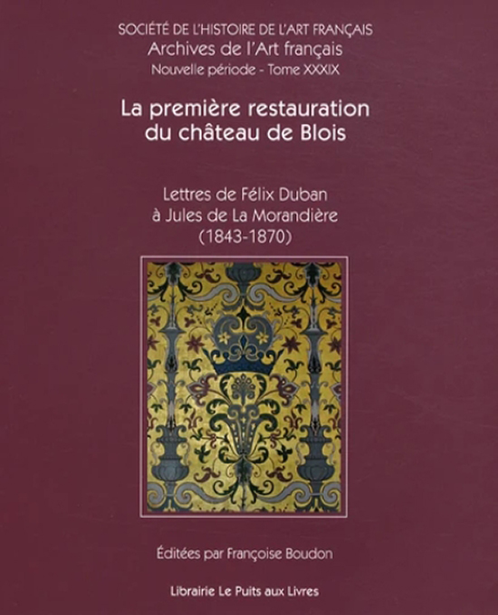 Ce tome des Archives de l'Histoire de l'Art français « La première restauration du château de Blois », publié en 2009, a fait l’objet d’un compte-rendu par Alice Thomine-Berrada dans Bulletin Monumental, 2011, p. 181-182 : « Avec la publication des 469 lettres adressées par Duban à son fidèle inspecteur des travaux du château de Blois, l’architecte blésois Jules de La Morandière, Françoise Boudon prouve que l’édition de sources, lorsqu’elle est faite avec intelligence et érudition, reste essentielle à l’avancement de la recherche en histoire de l’art […] Ces lettres révèlent que Duban défendit à Blois une autre vision de la restauration : à l’unité de style prônée par Viollet-le-Duc, il préféra défendre la voie de l’historicisme romantique qui l’amena à concevoir l’édifice ancien comme le témoin des différentes phases de l’histoire et à y préserver les traces laissées par la « succession des temps » ».