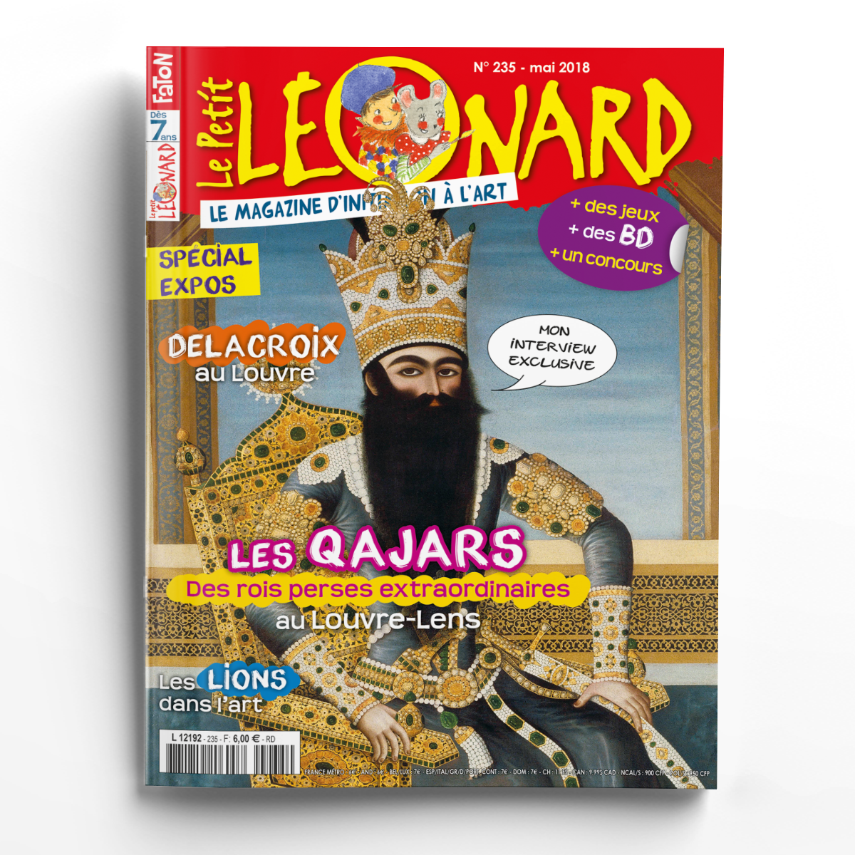Connais-tu le peintre Eugène Delacroix ? Ce peintre du 19e siècle adorait l’histoire ! Nous allons te raconter la sienne et tout te dire de son tableau le plus célèbre, La Liberté guidant le peuple. Au même moment, en Iran, se développait l’art qajar. Que de splendeurs ! Pour en savoir plus, j’ai décroché l’interview exclusive du plus grand des rois qajars, Fath Ali Shah. Joconde, elle, s’est armée de courage pour aller rencontrer des lions célèbres. Nous t’avons aussi préparé plein de jeux, de BD, d’idées de sorties et de lecture…
