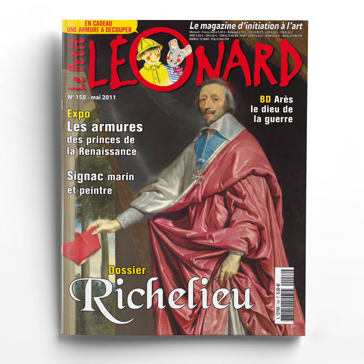Ce mois-ci dans ta revue arts, tu as rendez-vous avec un grand personnage de l'Histoire de France : Richelieu. A découvrir également les armures haute couture des princes de la Renaissance et ensuite fais un petit tour de France en compagnie du peintre et marin Paul Signac. A ne pas manquer : les expos, chapeau l'artiste, une mannequin à habiller avec une belle armure, les 4 pages de Bd sur Arès, le dieu grec de la guerre, un récré'art, les jeux…