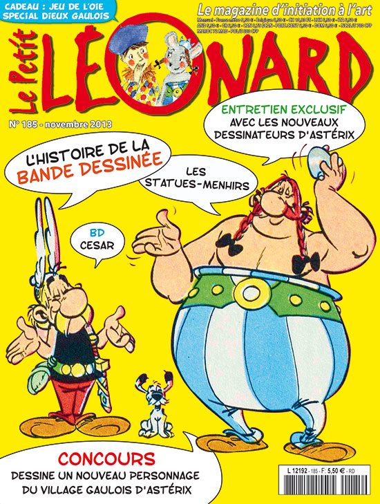 A découvrir ce mois-ci, un dossier sur l'histoire de la bande dessinée, un article sur les statues-menhirs, l'interview des nouveaux dessinateurs d'Astérix que Léonard et Joconde ont rencontré à l'occasion de l'exposition de la Bnf, une Bd sur César, des actus, des jeux dont un jeu de l'oie spécial dieux gaulois à détacher ! A ne pas manquer, notre grand concours de dessin pour gagner des albums d'Astérix et des abonnements au Petit Léonard !!!