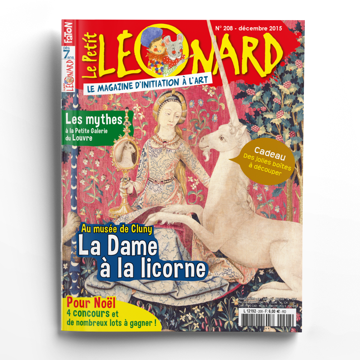 Avec ton numéro de décembre, c’est la fête ! Quatre concours et de nombreux lots à gagner ! Et un voyage au pays de La Dame à la licorne, la magnifique tenture du musée de Cluny, à Paris : tu y feras connaissance avec la licorne sur l’île fleurie où elle tient compagnie à sa maîtresse, une belle dame du Moyen Âge, et tu y verras quantité de petits animaux ! Ensuite direction la Petite Galerie du Louvre : sa première exposition consacrée aux mythes et à leur histoire, de la mythologie grecque à la Guerre des étoiles ! Et enfin, un autre voyage étonnant chez les peuples du fleuve Amour au musée du quai Branly, en Sibérie extrême-orientale,