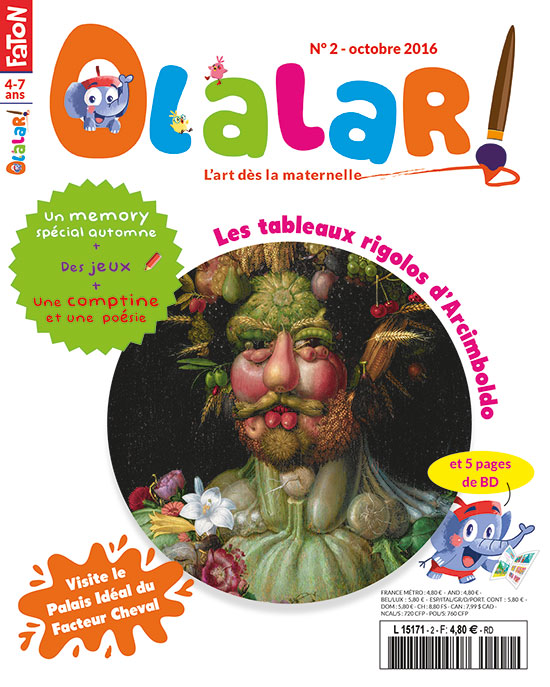 Les fruits et les légumes, c’est bon pour la santé mais moi, je les préfère dans les tableaux d’Arcimboldo, un peintre italien très rigolo. C’est ce que je vais te faire découvrir avec mes amis Croki et Gomme, les deux poussins malicieux. Tu as aussi rendez-vous avec Noé et Lisa pour visiter un monument étonnant : le palais idéal du Facteur Cheval. Des jeux, des BD, des astuces pour apprendre à dessiner et à mieux regarder les œuvres d’art… ouvre vite ton numéro !