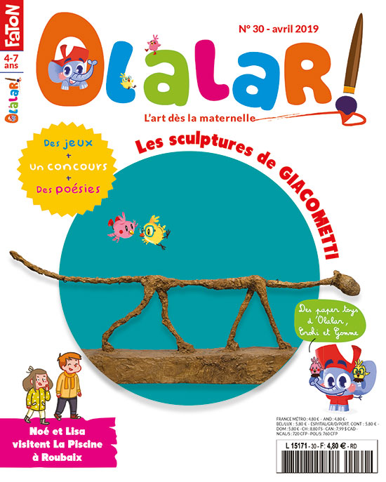 Des sculptures minces comme un fil ! C’est ce que faisait Alberto Giacometti, un artiste que nous te présentons dans ce numéro. Avec Noé et Lisa, nous allons pousser la porte de la Piscine de Roubaix. Pas besoin de maillot de bain, c’est un musée ! Il y a aussi des jeux, des poésies, des astuces pour apprendre à mieux regarder les œuvres d’art ! Amuse-toi bien !