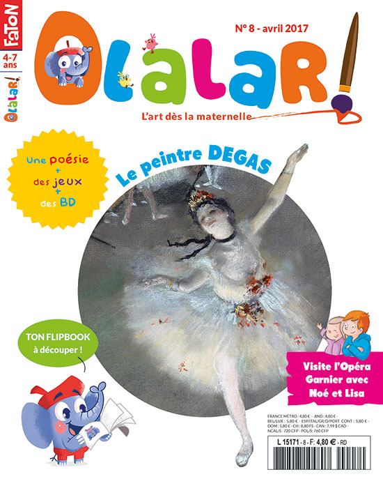 Cabriole, petit saut, pirouette, entrechat… Croki et Gomme applaudissent l’éléphant Olalar qui s’est découvert une passion pour la danse et pour les chevaux… Tout comme Edgar Degas ! Et si nous en profitions pour partir à la rencontre de ce peintre célèbre ? Ce mois-ci, avec Noé et Lisa, tu visiteras l’Opéra Garnier. Tu découvriras encore une poésie, plein de jeux et une nouvelle rubrique sur la musique ! Amuse-toi bien !