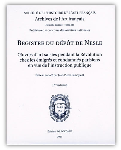 Le "registre Naigeon", tenu par Jean Naigeon au dépôt de Nesle, répertorie les biens confisqués aux émigrés pendant la Révolution. Complétés par l'inventaire de l'abbé Mulot, ces documents, conservés dans les Archives nationales, offrent une précieuse ressource pour retracer l’histoire des oeuvres d’art sous la période troublée de la Révolution. Jean-Pierre Samoyault a méticuleusement édité ces archives, avec un appareil de notes extrêmement riches en informations totalement inédites.