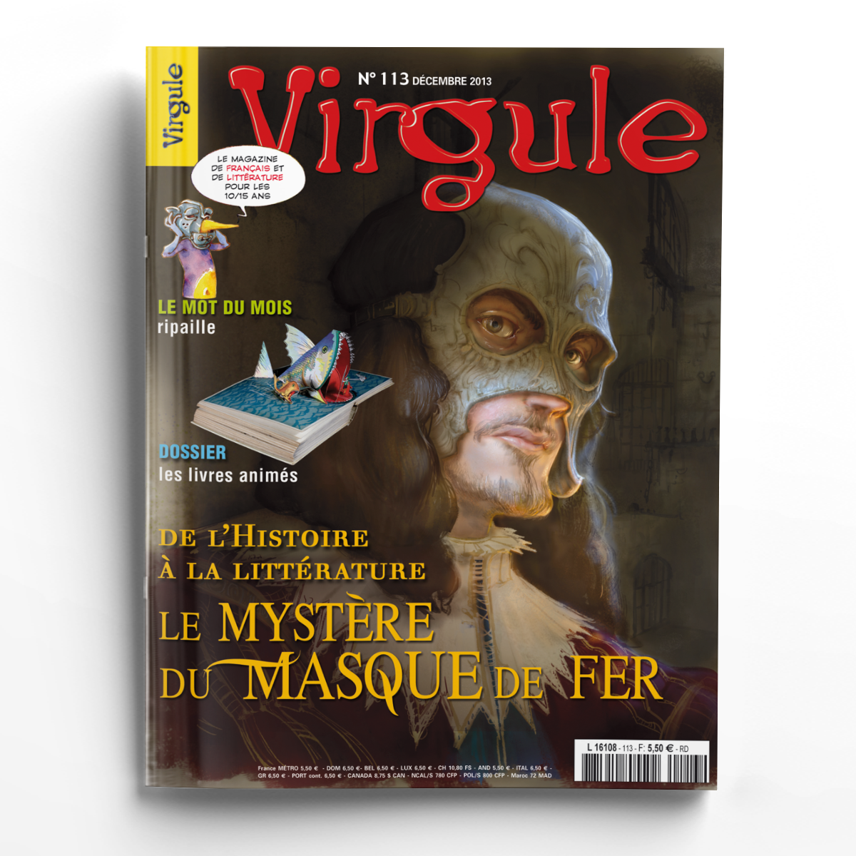 Ce mois-ci, Virgule enquête sur le mystère de l'Homme au masque de fer. Sous le règne de Louis XIV, un personnage masqué a vécu de longues années emprisonné sans qu'il ne puisse révéler à personne son nom, ni le motif de son incarcération… Le Masque de fer est devenu à la fois une énigme historique et un mythe dont la littérature s’est emparée. Virgule te propose aussi un dossier sur les livres animés, aussi appelés livres à système. Il s'agit de livres surprenants et étonnants. Dans ce numéro, l'actualité est très riche avec le cinquantenaire de la disparition de Jean Cocteau, le centenaire de la parution de Du côté de chez Swann par Marcel Proust et le jeu Harry Potter. Tu trouveras aussi le coin lecture, le courrier et les poèmes des lecteurs, la SPM et l'étymolojeu, sans oublier la BD d'Ali et Lola !