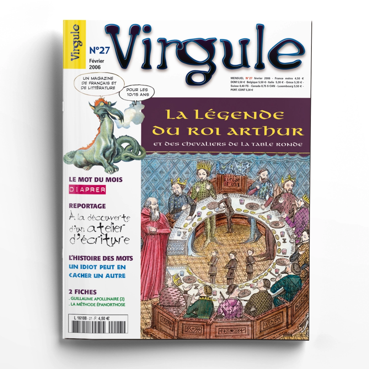 Dossier dans ce numéro de ta revue enfant : La légende du Roi Arthur. SPM : "Diaprer". Etymolojeu : "Bienvenu chez les loustics". Histoire des mots pour apprendre du vocabulaire : "Un idiot peut en cacher un autre". Reportage : "La belle aventure littéraire de Poé et Julia". BD : "Le Fulgurateur Roch" et "Ali et Lola".