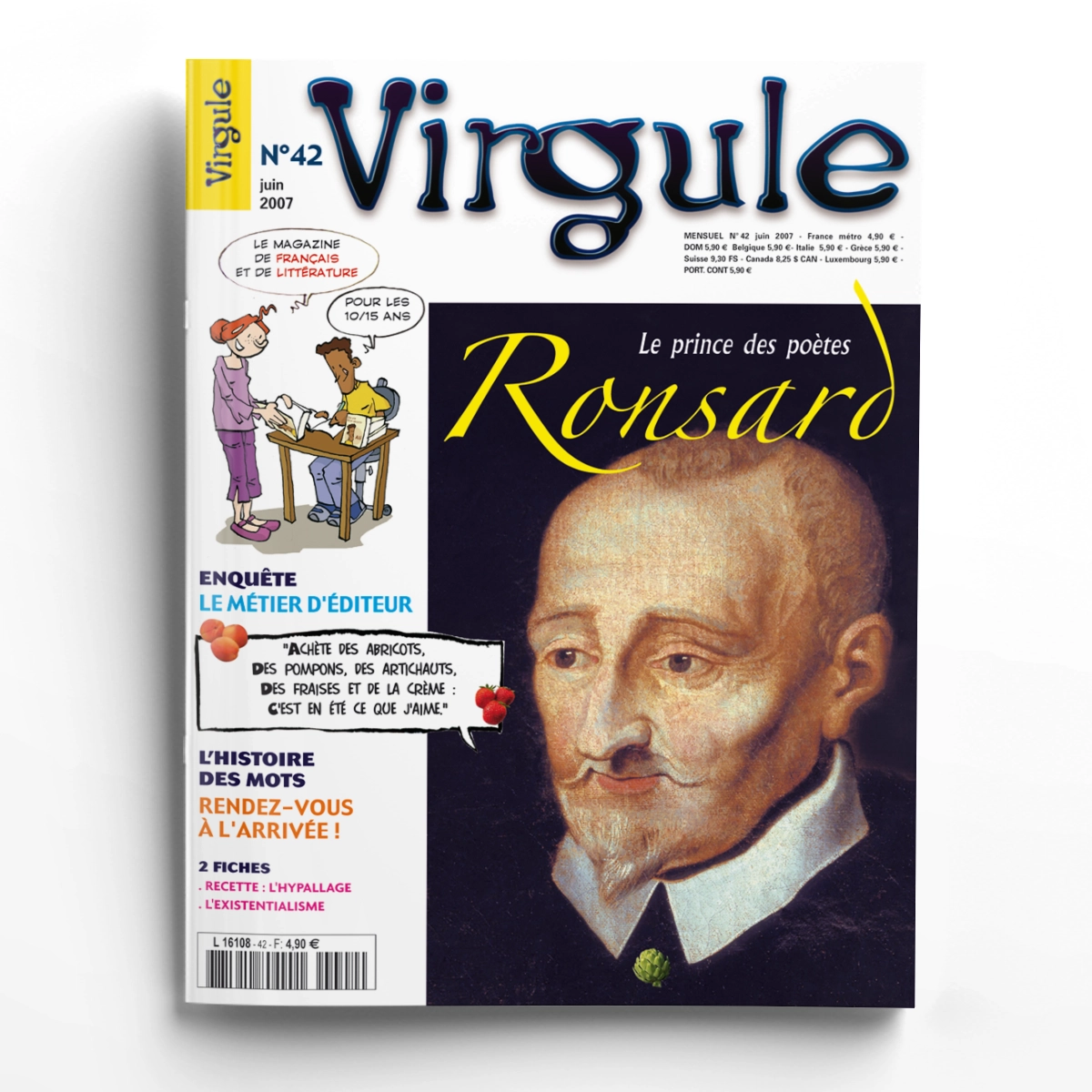 La vie de Pierre de Ronsard (1524-1585), le "Prince des poètes", avec de nombreux poèmes, dans ce numéro de la revue enfant Virgule.