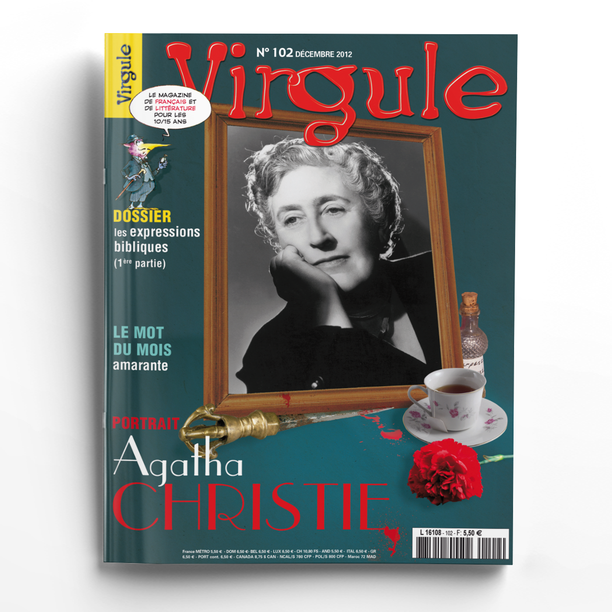 Ce mois-ci, Virgule te présente Agatha Christie, la célèbre romancière surnommée « la Duchesse de la Mort » et « la Reine du crime ». Agatha Christie (1890-1976) est la créatrice de deux fameux détectives : Hercule Poirot et Miss Jane Marple. Découvre la vie fascinante de cette auteure de romans policiers qui fut aussi préparatrice en pharmacie pendant les deux Guerres mondiales et assistante sur les chantiers de fouilles de son second mari. Pour connaître l'origine et la signification des expressions comme "la pomme d'Adam", "vieux comme Mathusalem" ou "pauvre comme Job", lis l'enquête sur les expressions de la langue française qui sont issues des récits bibliques. Cet article propose un petit florilège d'expressions avec une première partie consacrée aux expressions tirées de l’Ancien Testament. Profite des vacances de Noël pour lire, aller au cinéma et visiter des expositions : les pages actus te donnent le programme ! Retrouve aussi le coin lecture, le courrier et les poèmes des lecteurs, la SPM et l'étymolojeu, sans oublier la BD d'Ali et Lola !