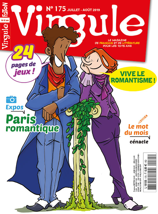 Vive le romantisme ! Ali et Lola sont allés visiter la grande exposition Paris romantique, 1815-1848. Un festival de jeux complète la visite : énigmes, test (êtes-vous romantique ?), quiz (parlez-vous romantique ?), mot mystérieux, poème à trous, citations codées... À vous de jouer ! Au sommaire de ce numéro également : un mot à adopter avec la SPM (cénacle), le courrier, le coin lecture et les BD ! Bonnes vacances !
