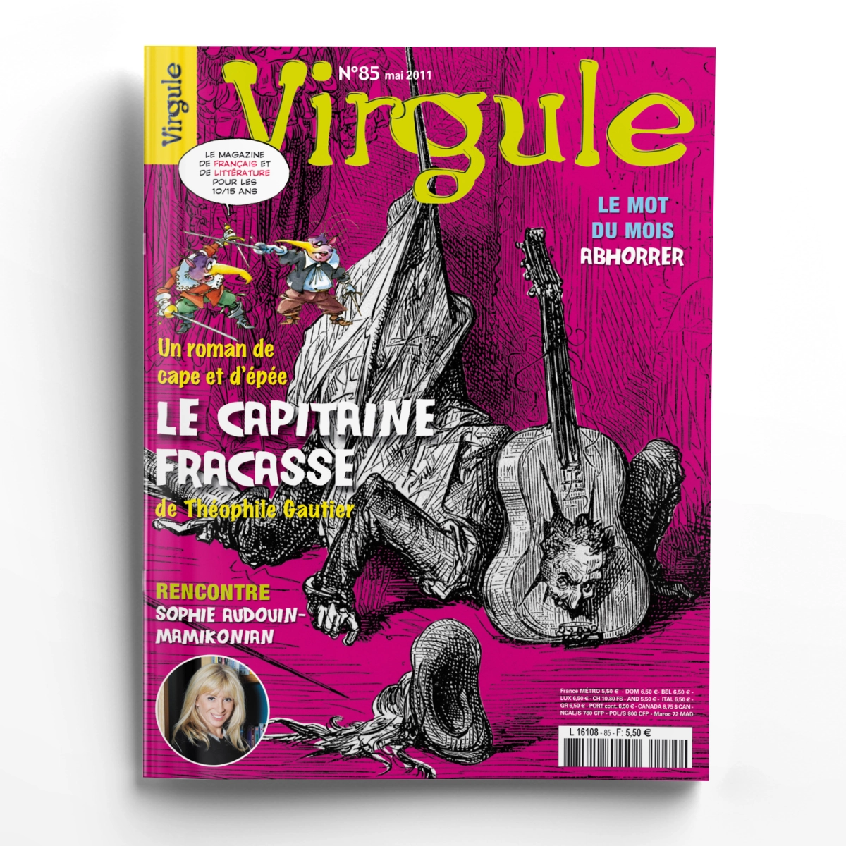 Cette année nous fêtons le bicentenaire de la naissance de Théophile Gautier, auteur de recueils poétiques, de contes et de nouvelles fantastiques, de récits de voyages et de douze romans, dont Le Capitaine Fracasse, auquel ce numéro consacre un dossier. Découvrez un roman de cape et d'épée à la fois burlesque et flamboyant, plein de fantaisie, riche d’aventures, de coups de théâtre et de rebondissements, et dont l’action se déroule au XVIIe siècle, sous le règne de Louis XIII. Les actus vous présenteront les expositions organisées, en 2011, pour rendre hommage à Théophile Gautier et les deux fiches auteur vous donneront la biographie de ce grand poète et romancier. Ali et Lola ont posé 20 questions à Sophie Audouin-Mamikonian, une princesse plutôt originale qui avait beaucoup d’imagination et une plume magique, dont elle se servait pour écrire Tara Duncan et Indiana Teller. Le mot du mois "abhorrer", l'étymolojeu sur le milieu et l'histoire des mots sur les pas, vous feront jouer avec les mots. Retrouvez aussi les rimes en jeux, les nouvelles, le courrier et les poèmes des lecteurs et les jeux, sans oublier la BD d'Ali et Lola ! Un numéro de ton magazine de français sur Le Capitaine Fracasse.