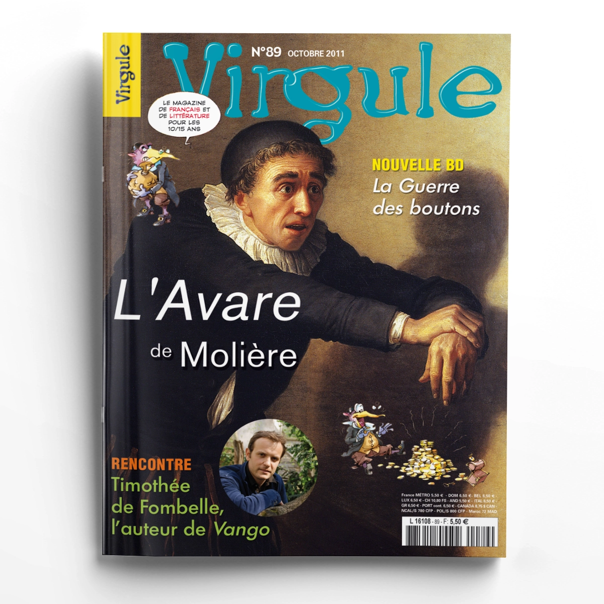 De toutes les pièces de Molière, l’Avare est, avec le Bourgeois gentilhomme, une des plus populaires, et celle aussi qui, après le Tartuffe, a été jouée le plus grand nombre de fois, depuis le XVIIe siècle. Virgule vous propose un dossier consacré à cette comédie grinçante. Timothée de Fombelle s’est imposé comme un des grands auteurs de littérature pour la jeunesse avec Tobie Lolness, son premier roman, qui a déjà été traduit en vingt-neuf langues. Il y a eu ensuite Céleste, ma planète, puis Vango, vaste récit d’aventures dont le second tome vient de paraître. À cette occasion, Timothée de Fombelle a accepté de répondre aux questions de deux de ses lecteurs les plus enthousiastes : Ali et Lola ! Le mot du mois "cacochyme", l'étymolojeu sur le sommeil et l'histoire des mots sur les "tontons et tatas", vous feront jouer avec les mots. Retrouvez aussi les rimes en jeux, le coin lecture, le courrier et les poèmes des lecteurs, sans oublier la BD d'Ali et Lola ! Dans ce numéro, découvrez les quatre premières planches de la nouvelle BD adaptée du roman la Guerre des boutons de Louis Pergaud.